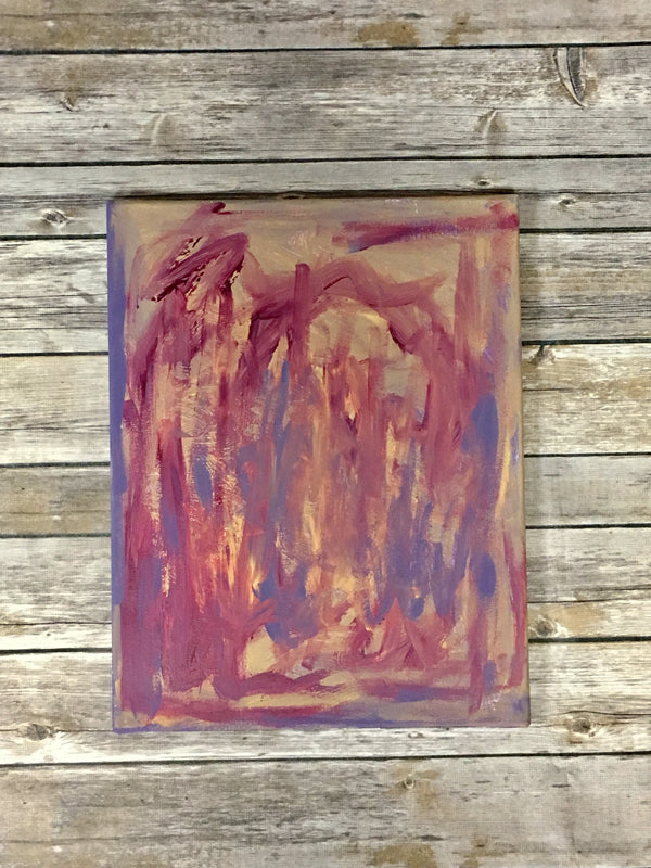 Calmed by the laziness of rainy days, the artist chose to portray a rainy day in her favorite colors. The muted shades of purple represent the haziness of rain, while the vertical brush strokes reflect the movement. The piece is meant to be a window to a calm atmosphere for the artist.
